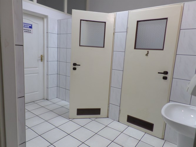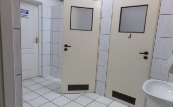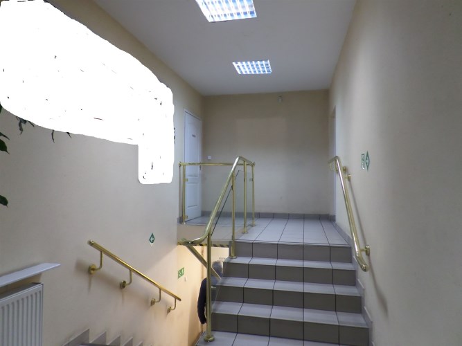 Na zewnątrz , przed halą znajduje się rampa załadunkowa oraz rampa uchylna.