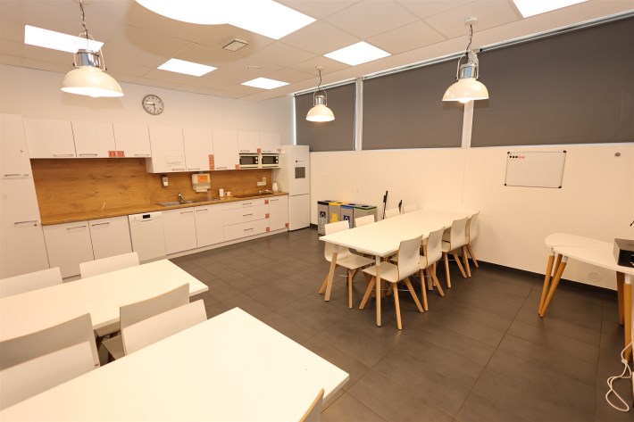 Zaplecze Socjalne: Dostęp do w pełni wyposażonej, funkcjonalnej kuchni socjalnej oraz czystych i zadbanych toalet na piętrze.