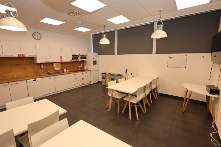Zaplecze Socjalne: Dostęp do w pełni wyposażonej kuchni socjalnej oraz czystych toalet, dostępnych dla najemców na piętrze.