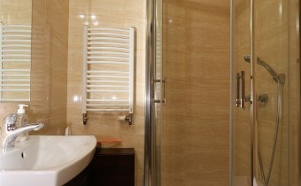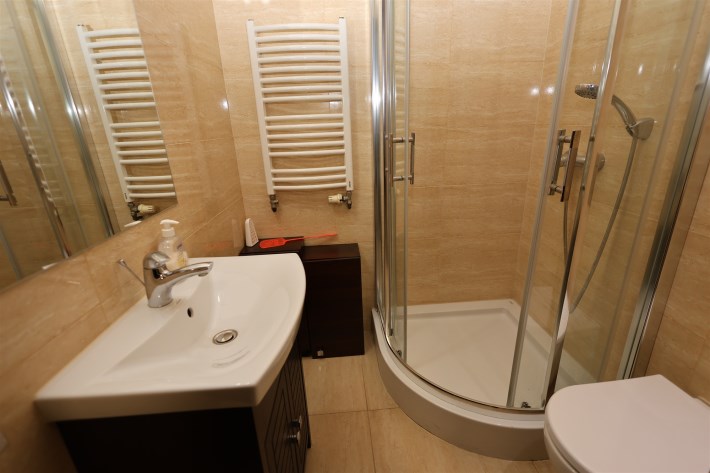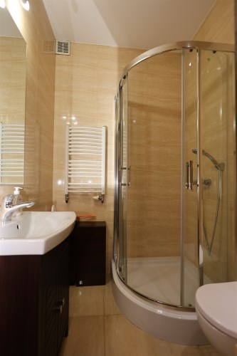 Łazienka z WC – wykończona w glazurze.