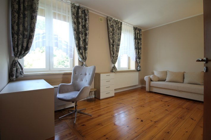 Pokoje są wysokie (2,90m), dobrze doświetlone, dają duże możliwości aranżacyjne. Na podłogach odnowione, świetnie zachowane deski (poza łazienką, gdzie są płytki ceramiczne).