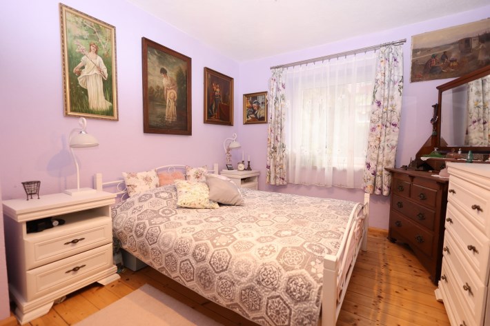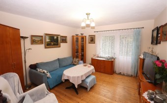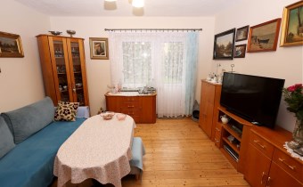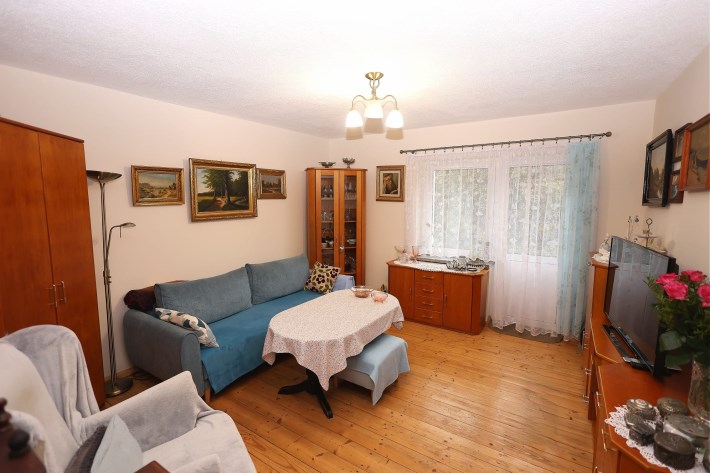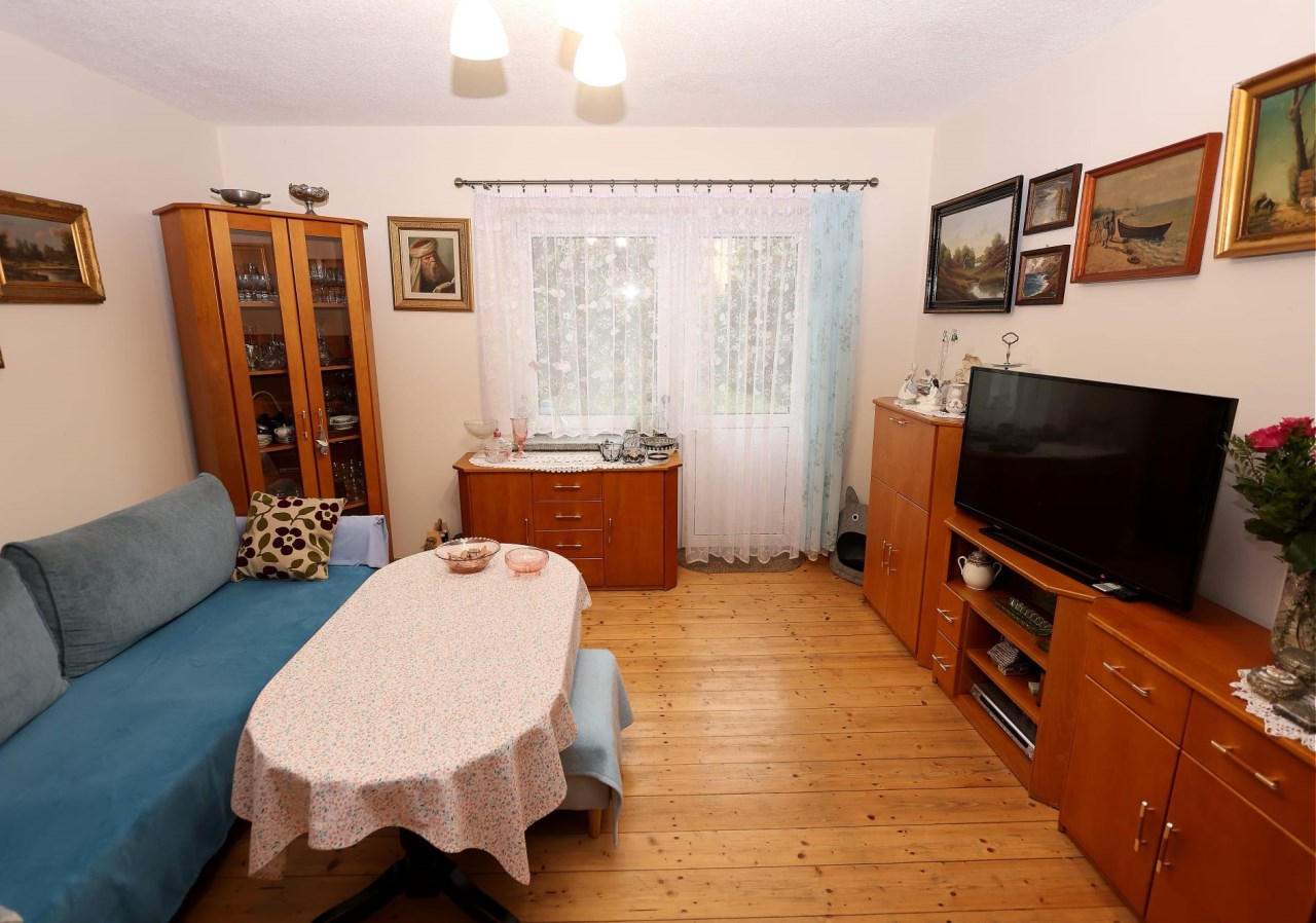 Pomieszczenia: 2 pokoje (salon, sypialnia), kuchnia, łazienka z WC, przedpokój.