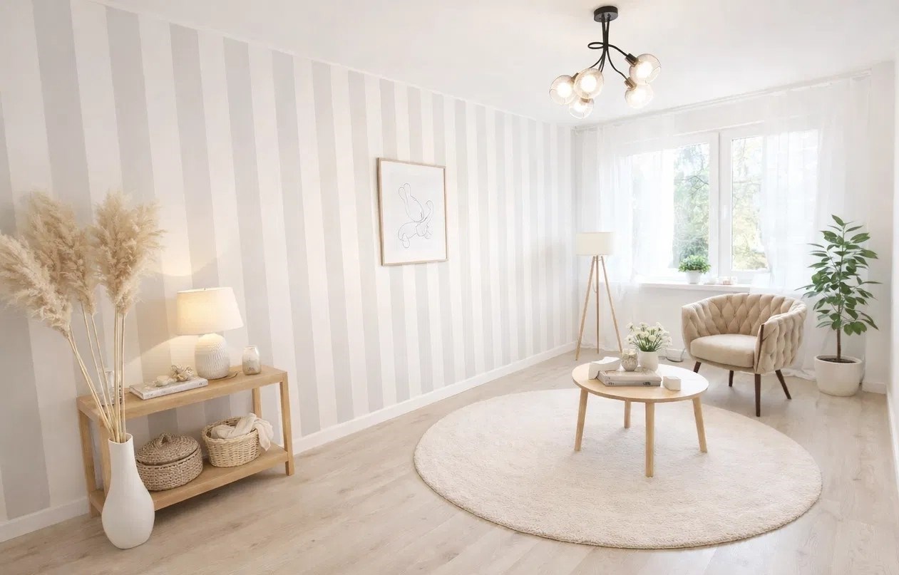 Ściany wygładzone i pomalowane na świeżo.