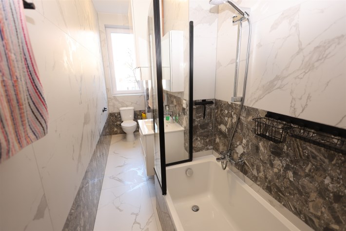 Łazienka z oknem – rzadkość w budownictwie wielorodzinnym, co znacząco podnosi komfort użytkowania i ułatwia wentylację.