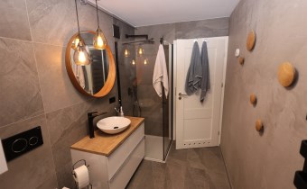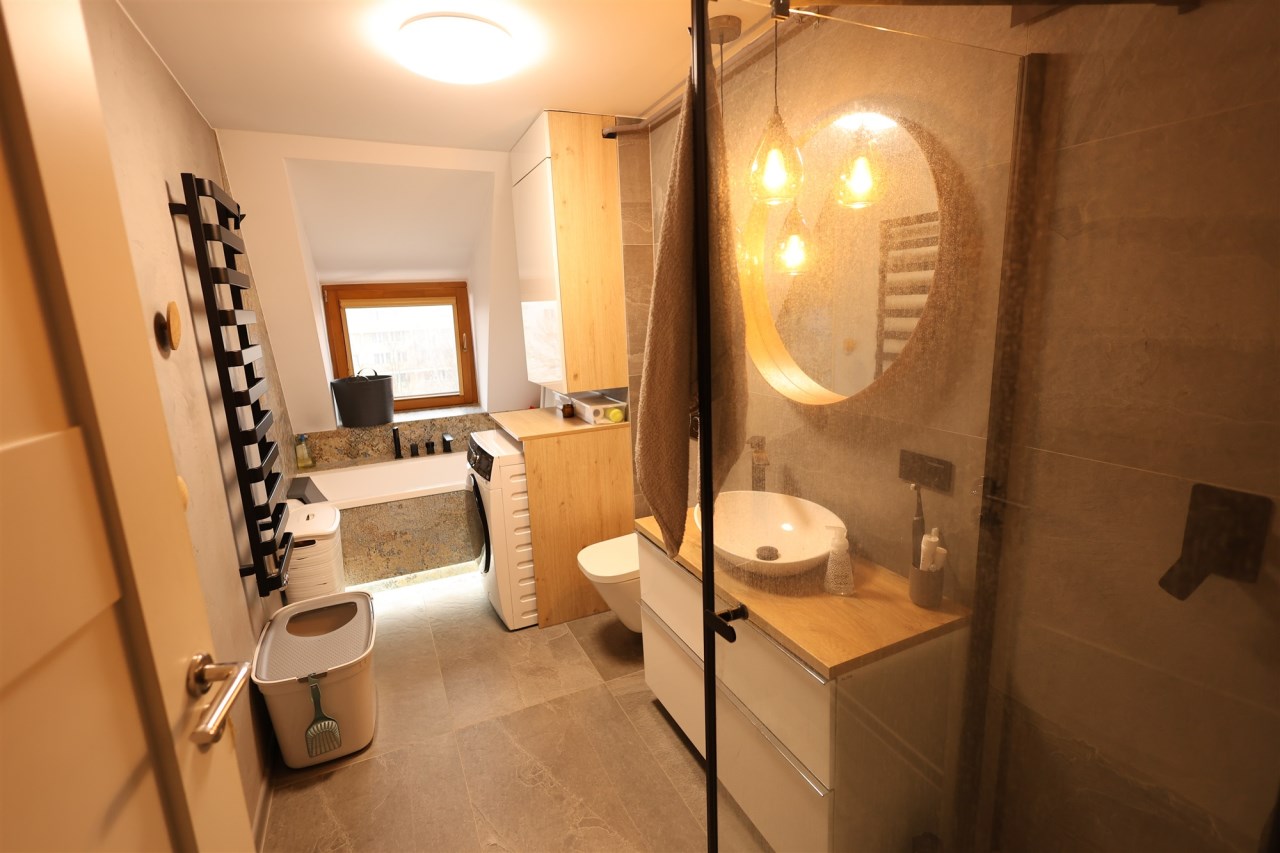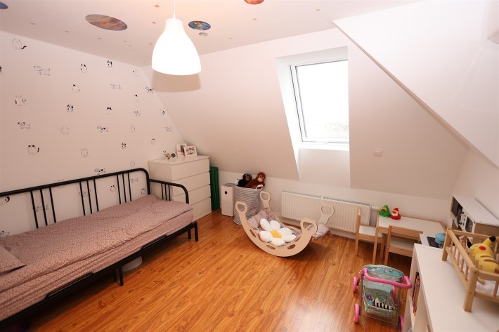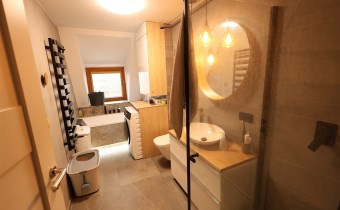 • Na podłogach nowoczesne panele oraz elegancka glazura.