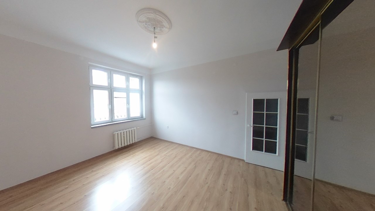 Mieszkanie składa się z trzech przestronnych, niezależnych pokoi (ok. 26, 21 i 16m2), odrębnej, dobrze doświetlonej, umeblowanej kuchni, dużej łazienki z WC, pomieszczenia gospodarczego (z przyłączem i miejscem na pralkę - może być zamienione na dodatkową toaletę) oraz przedpokoju.
