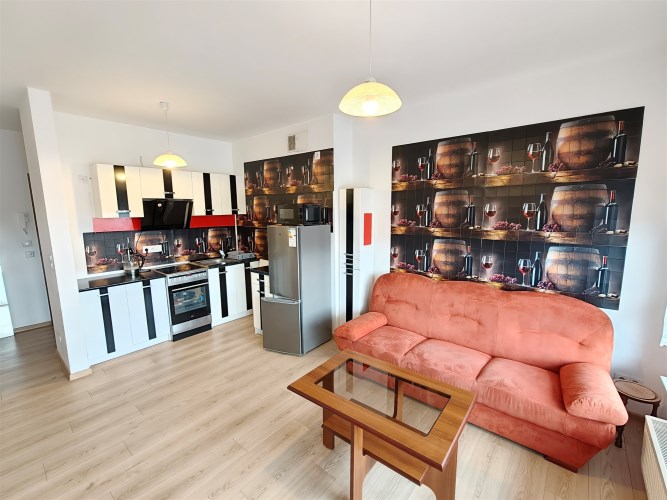 Salonu z aneksem kuchennym: Jasny i ustawny, z wyjściem na balkon.