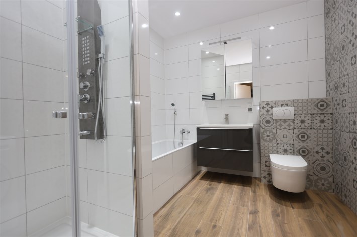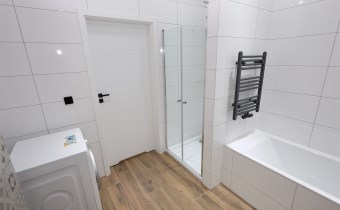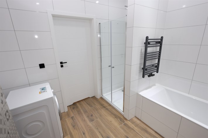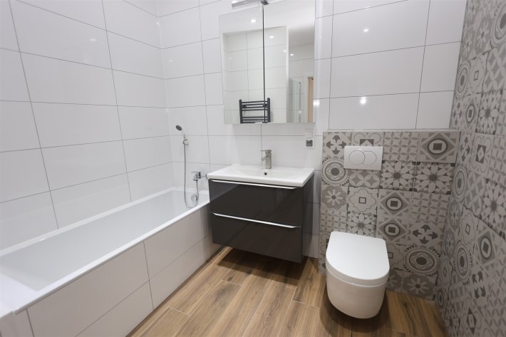 • Łazienkę z wanną: Nowocześnie urządzona, zapewniająca komfort użytkowania.