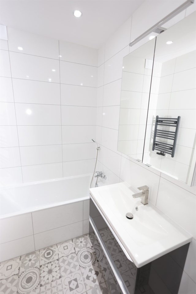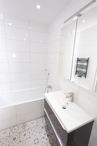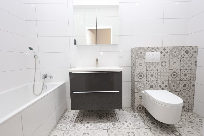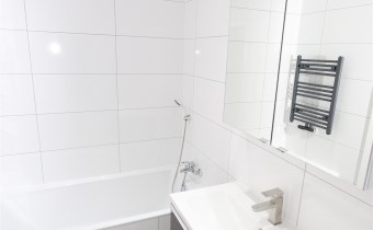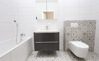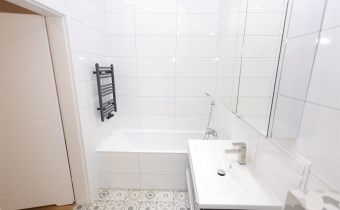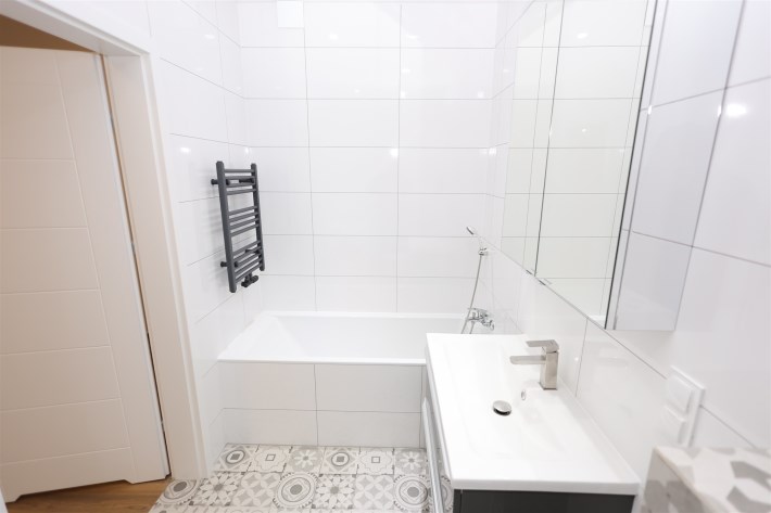 Łazienkę z wanną: Nowocześnie urządzona, zapewniająca komfort użytkowania.